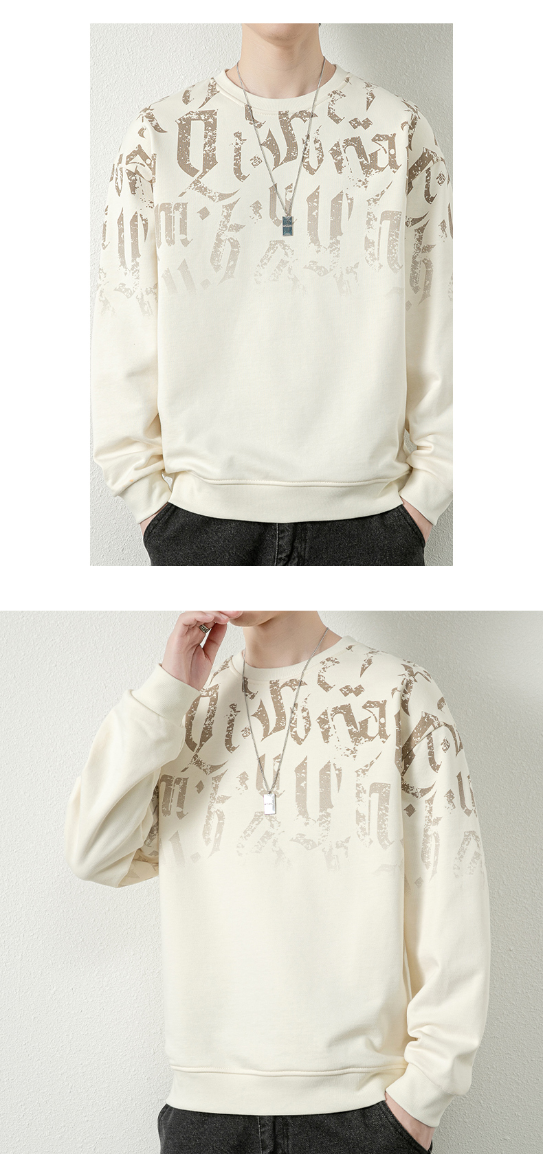 KZH真维斯美式男士卫衣春秋新款宽松百搭打底衫潮牌圆领休闲上衣