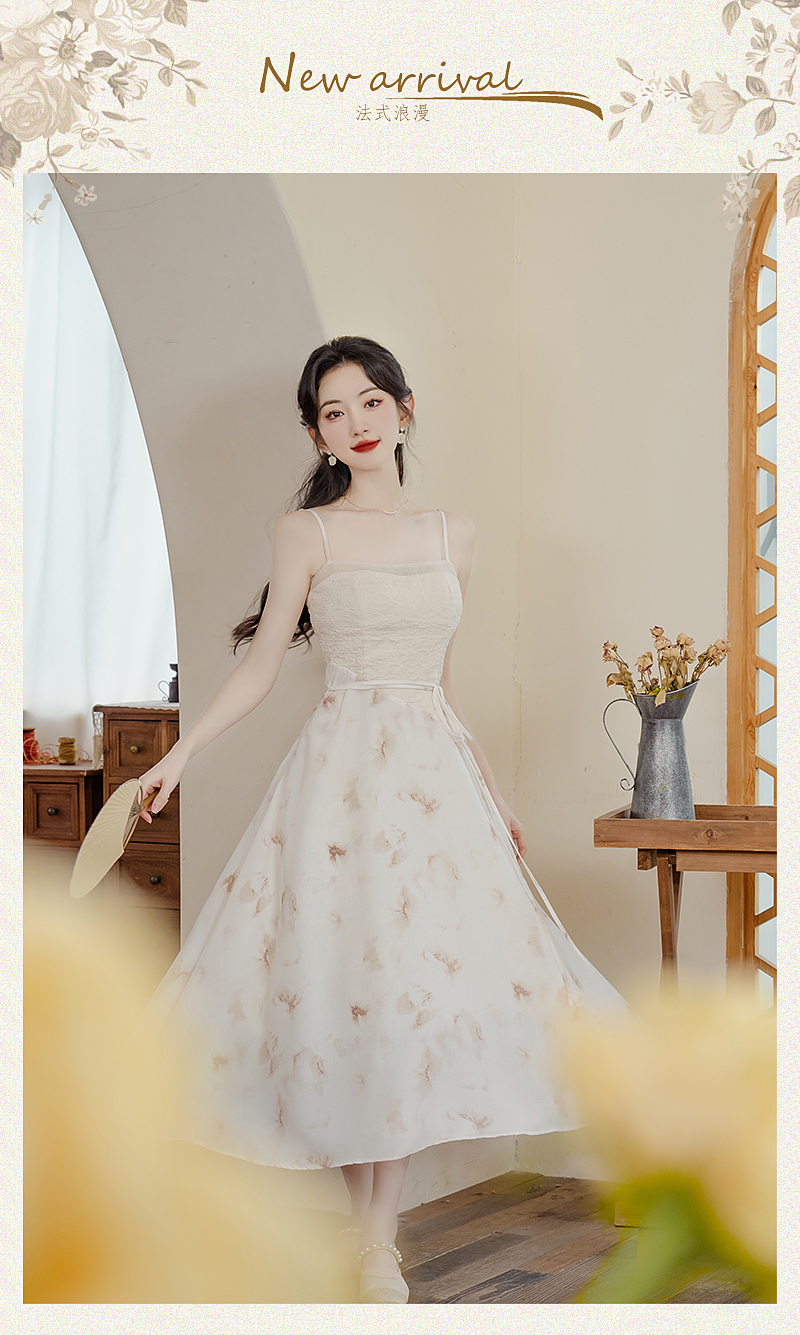清冷新中式国风禅意印花吊带裙子法式吊带茶歇连衣裙女夏季高级感