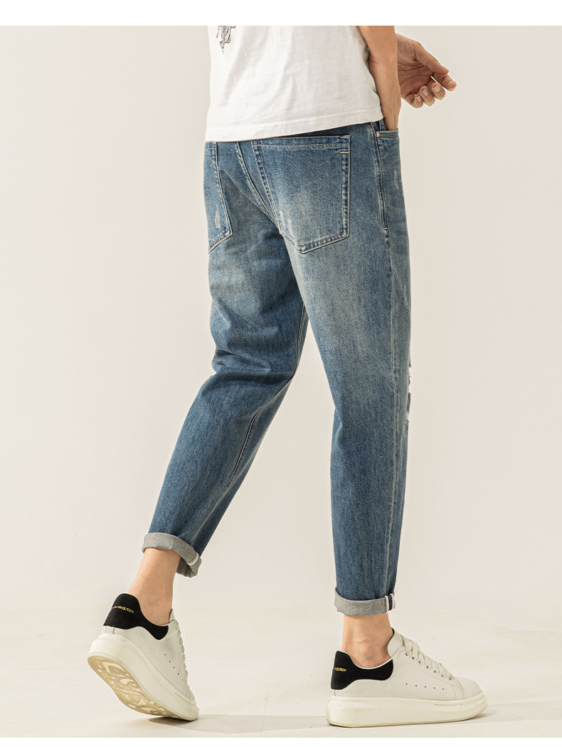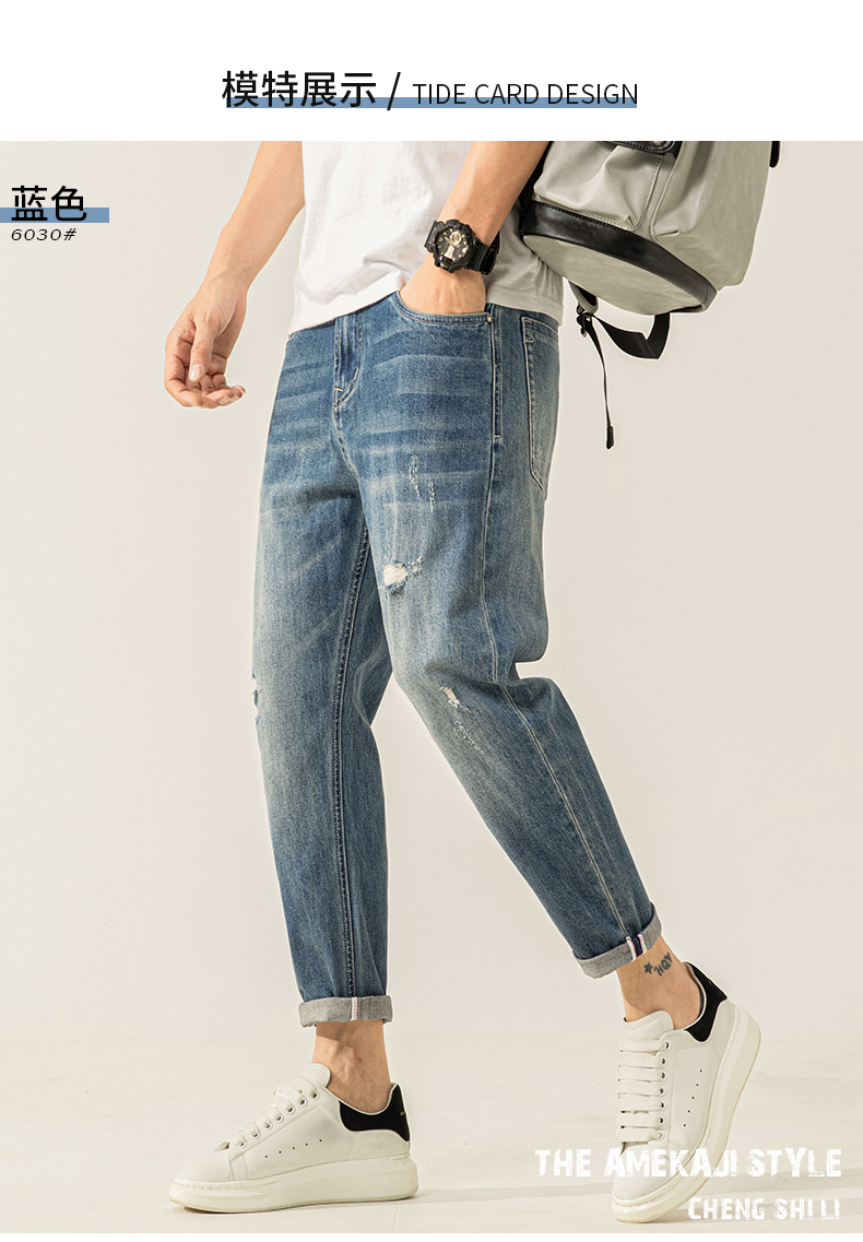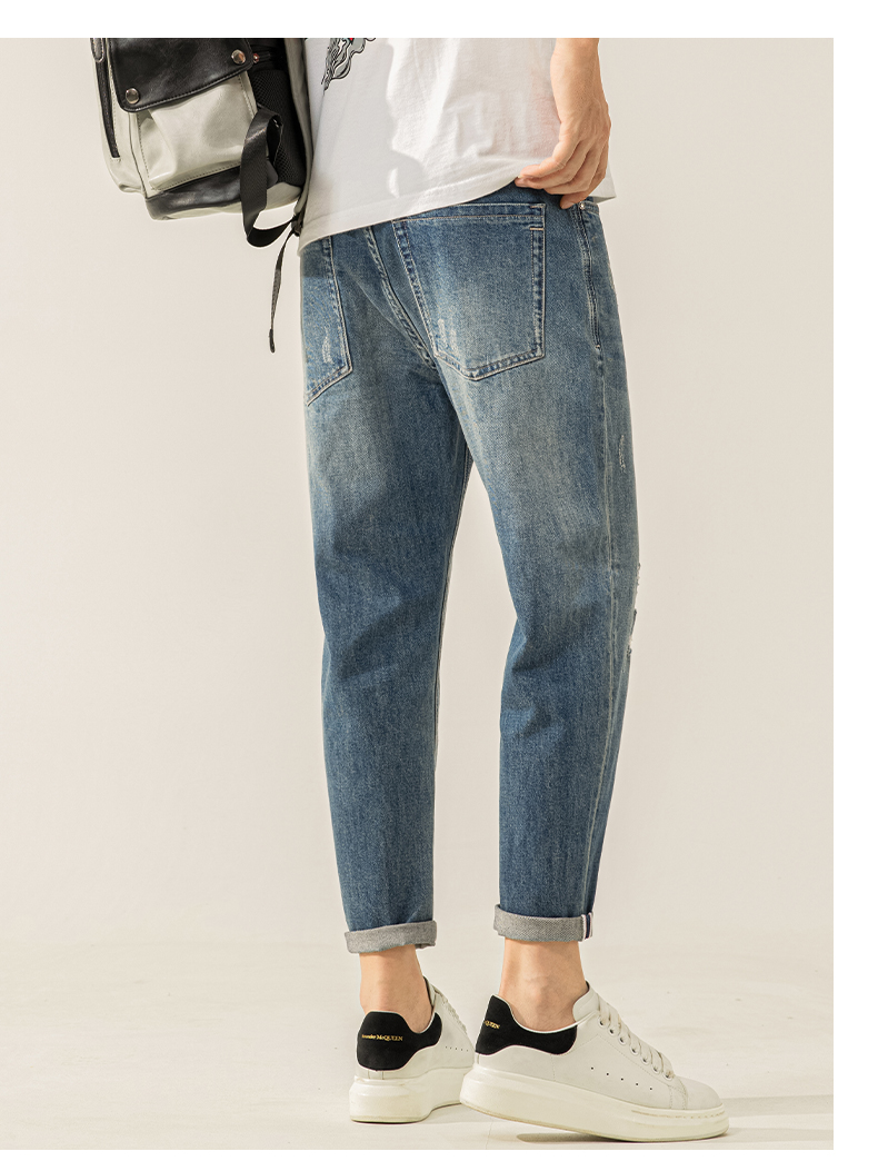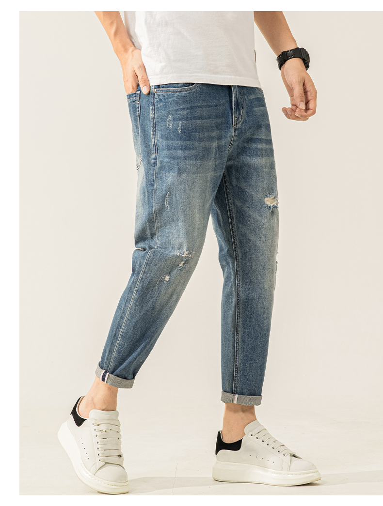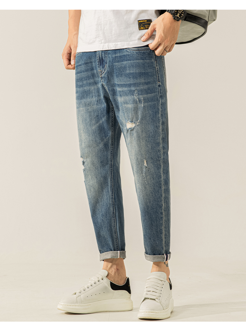 高端正品Lee男士牛仔裤春秋直筒修身九分裤秋季大码破洞男款裤子