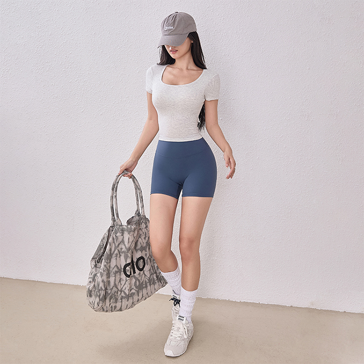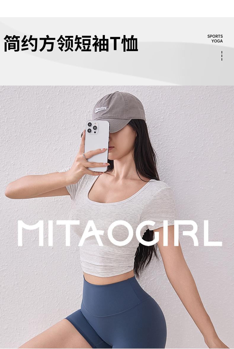 Mitaogirl后腰镂空瑜伽短袖女带胸垫健身上衣吸汗透气亲肤运动服