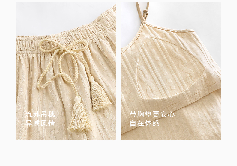 悦内带胸垫一体睡衣女士夏款夏季纯棉吊带背心短裤家居服夏天套装