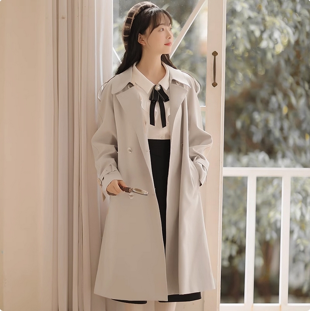 赫本风风衣外套女春秋季2025年新款秋冬加厚加绒大衣中长款小个子