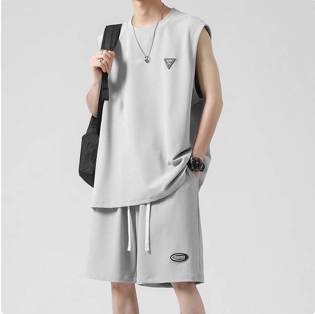 无袖t恤男士夏季薄款宽松冰丝短袖速干篮球衣服背心休闲运动套装