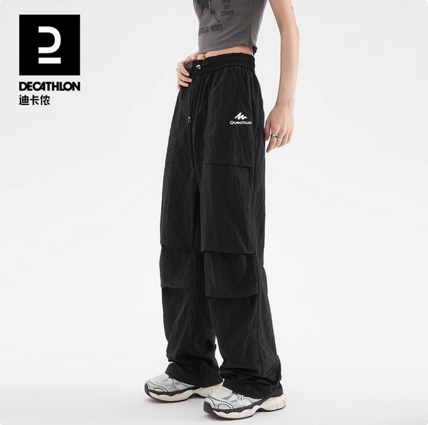 迪卡侬冰丝冲锋裤女款夏季户外登山垂感伞兵裤速干防晒运动工装裤