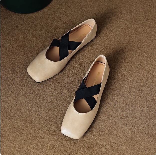 羊皮版~超软豆豆鞋女春夏浅口复古交叉绑带芭蕾舞鞋平底大码单鞋