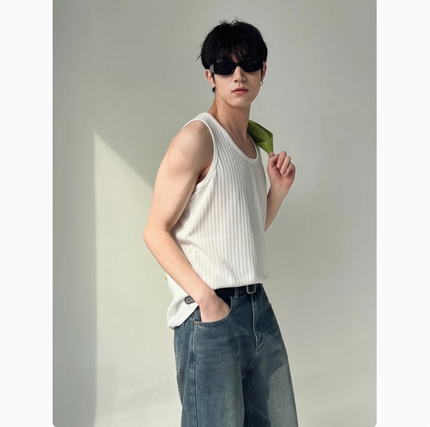 地平线男装 夏310g高克重坑条男女休闲纯色基础款肌理汗背心坎肩
