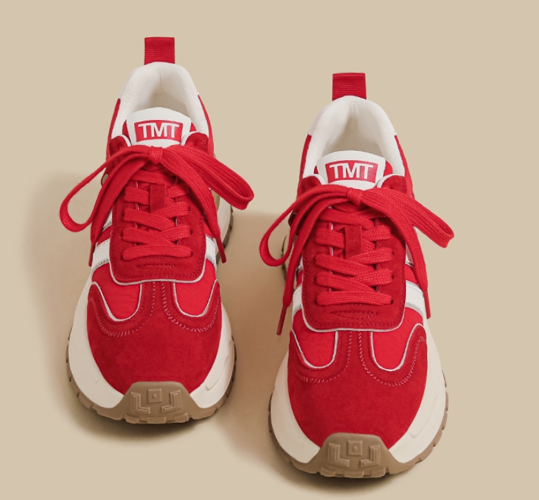 红色阿甘鞋女2025夏季新款小个子增高厚底条纹拼色德训运动老爹鞋