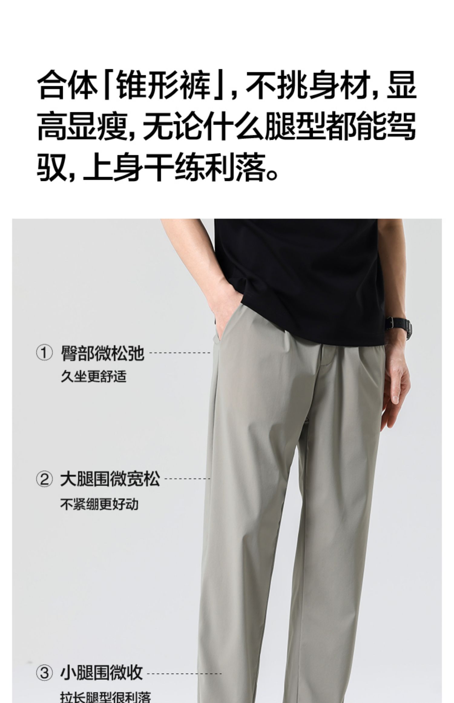 布衣传说 速干冰丝裤 夏季薄款休闲裤子男士宽松百搭锥形凉感长裤