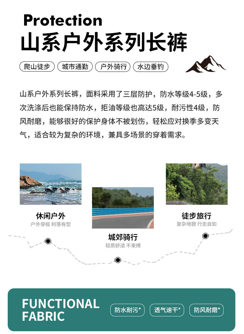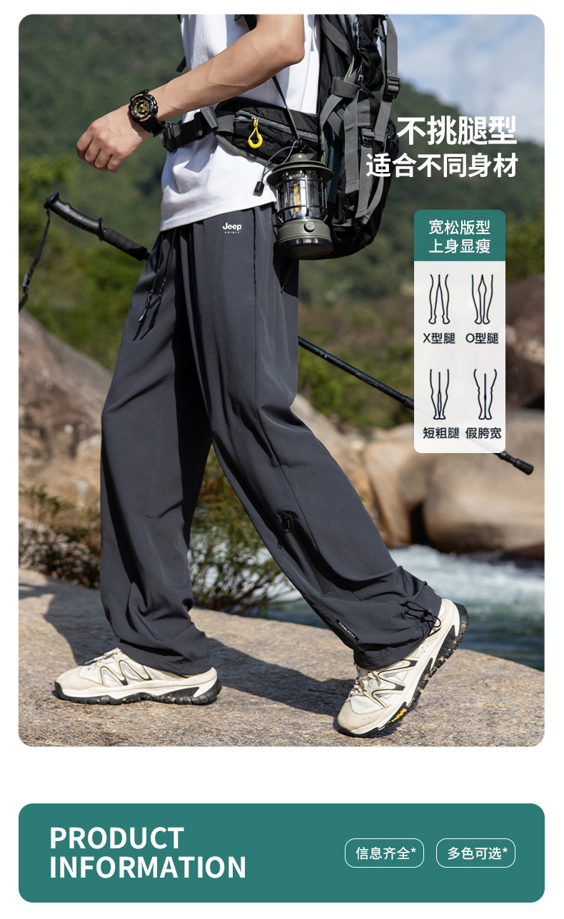 Jeep spirit夏季防泼水速干冲锋长裤男工装裤男款运动裤冰丝长裤