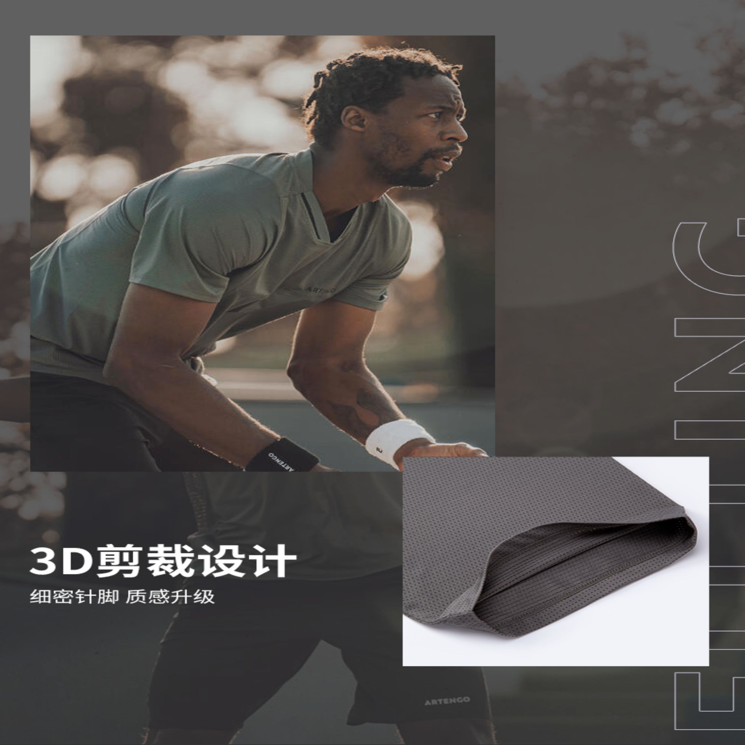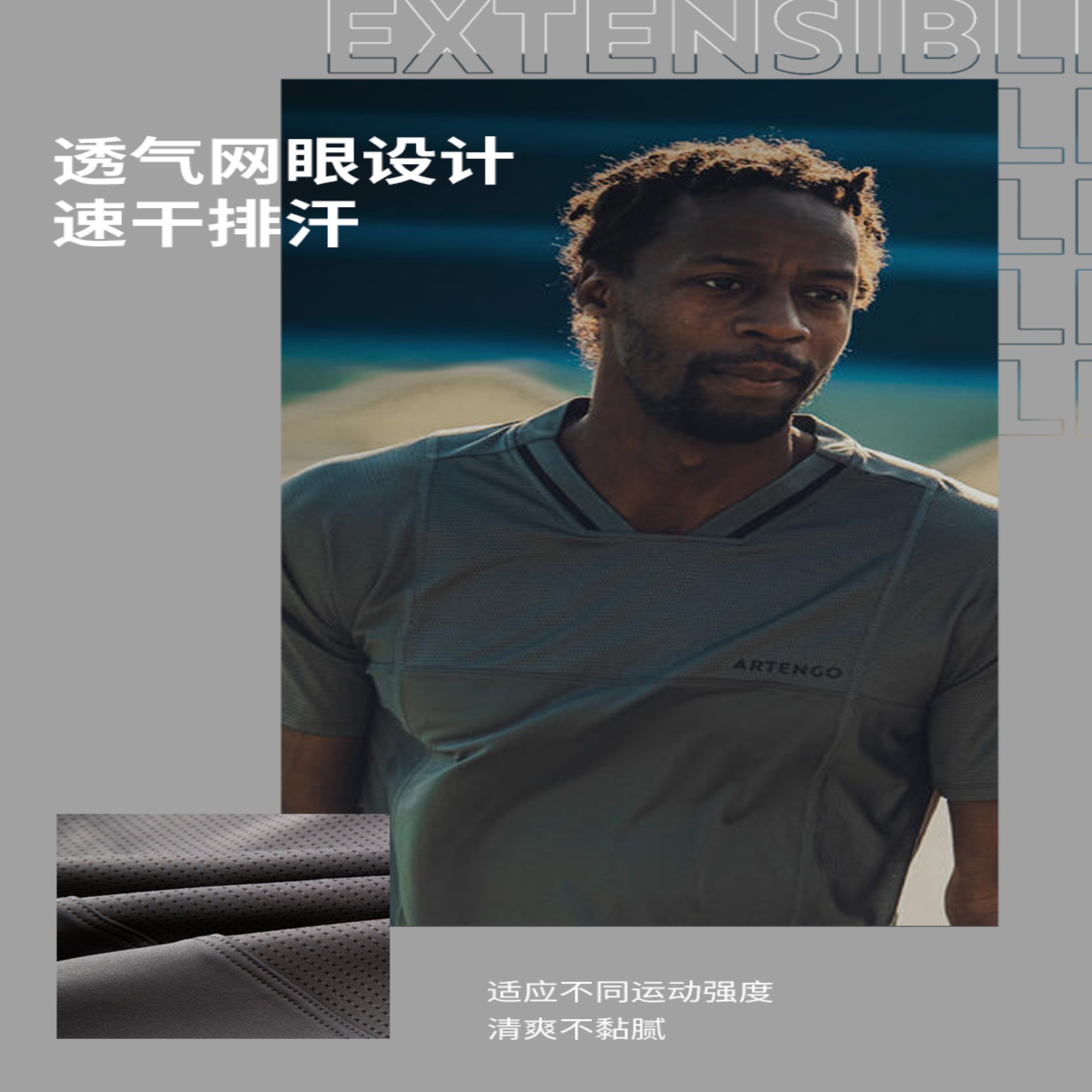迪卡侬速干衣T恤男夏季网球服运动训练半袖孟菲尔斯同款短袖SAJ1