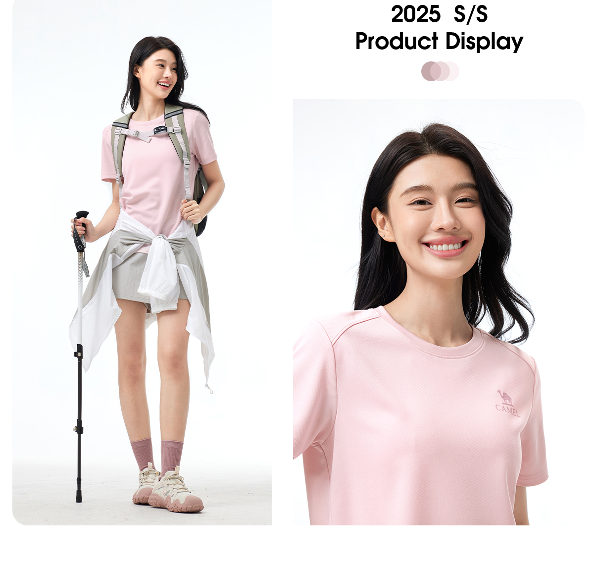 【速干】骆驼户外T恤女 春夏短袖圆领网眼透气徒步登山运动T恤男