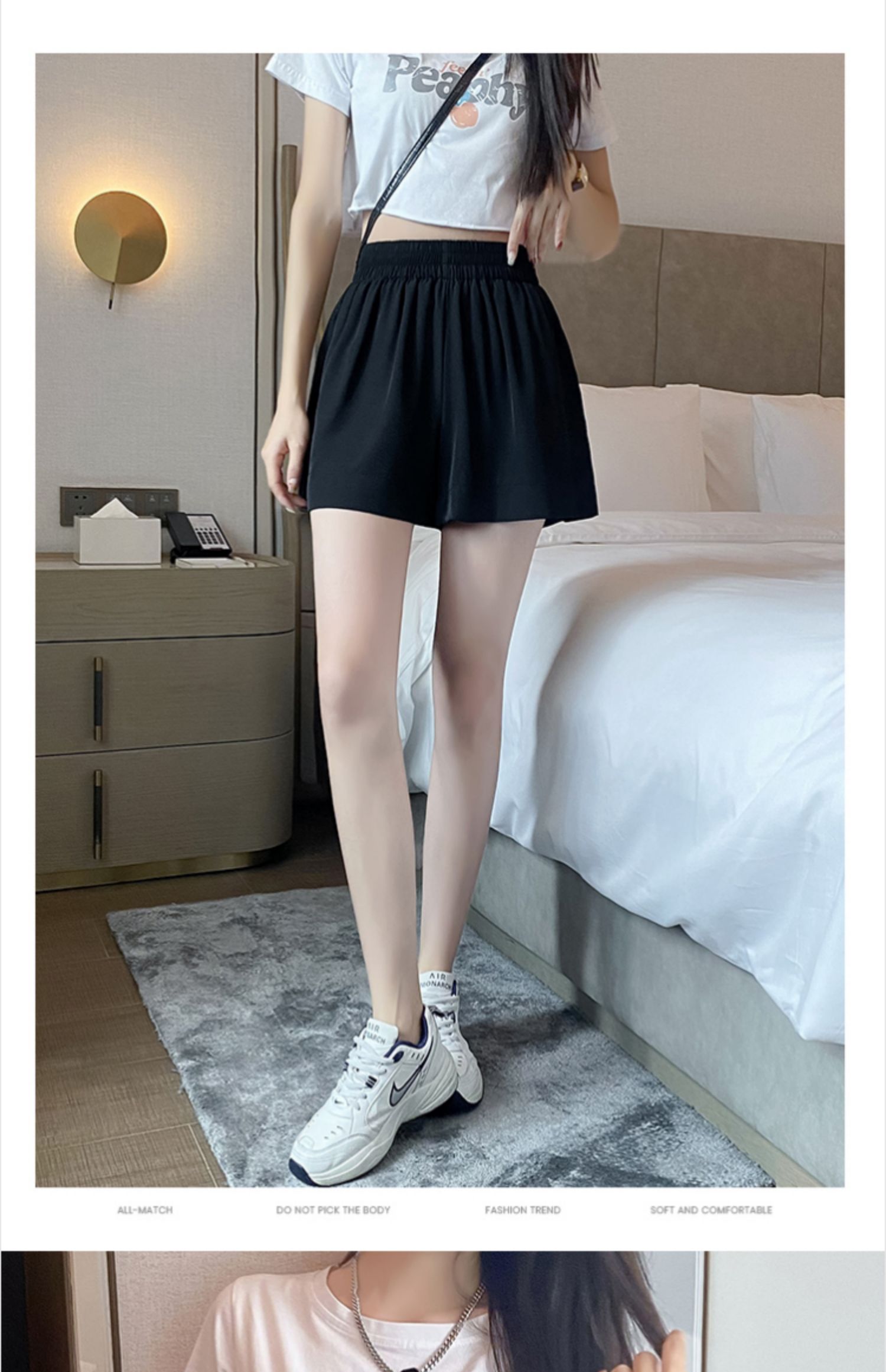 美式白色休闲短裤女夏季高腰紧身弹力裤子卡其色辣妹a字包臀热裤