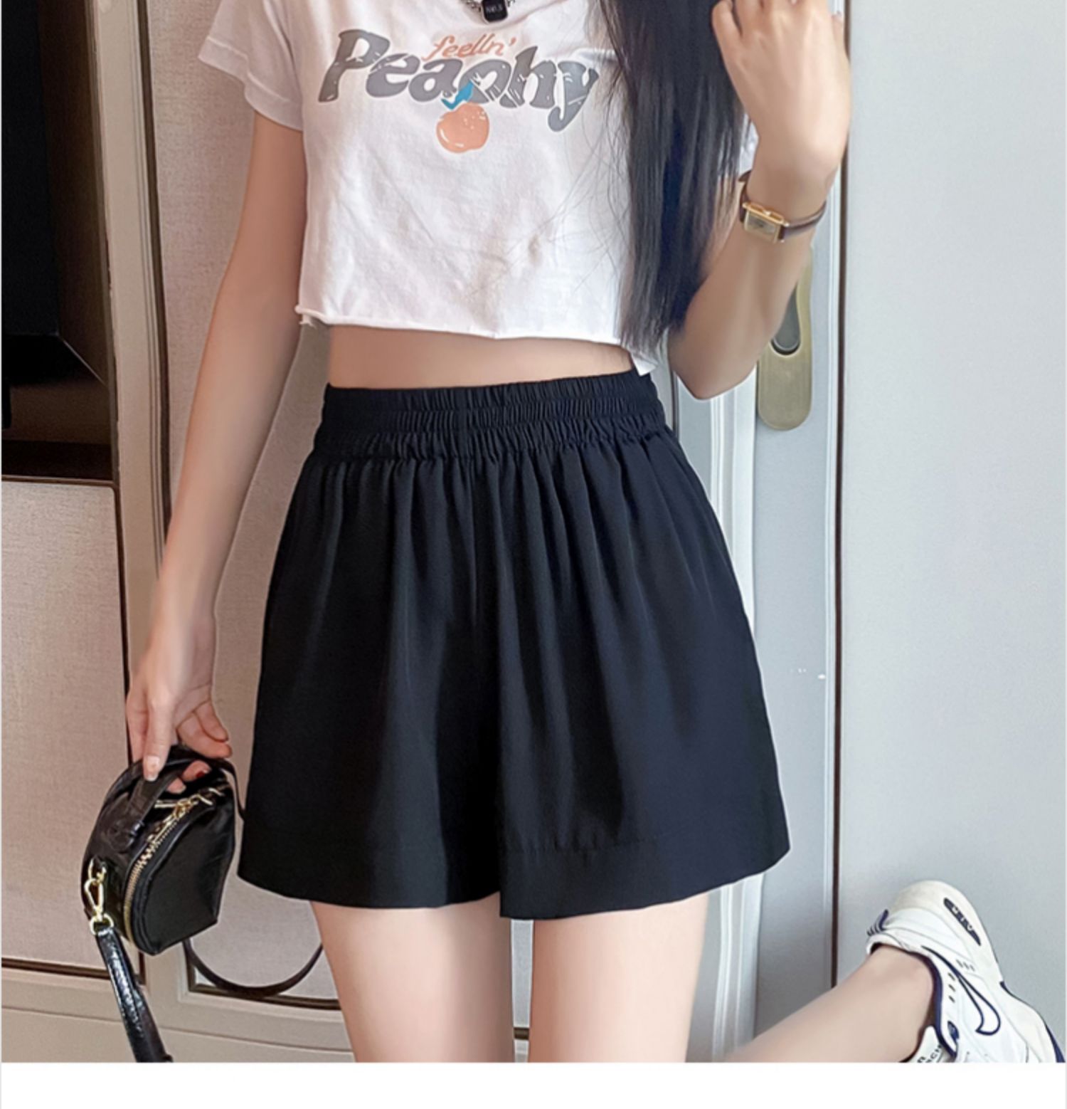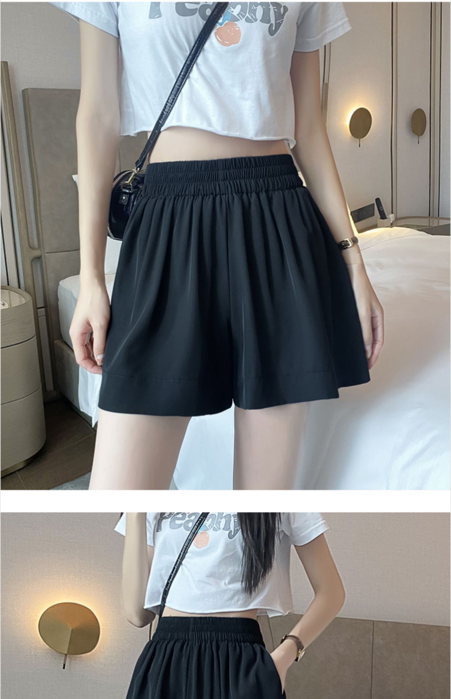 小个子冰丝短裤女士夏季薄款雪纺裤子2025新款夏天黑色西装五分裤