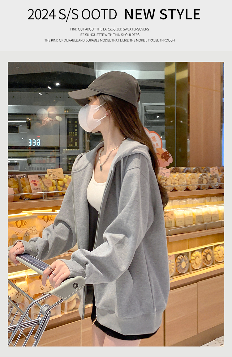 春季外套女春秋款2025新款爆款韩系连帽开春卫衣女款灰色开衫上衣