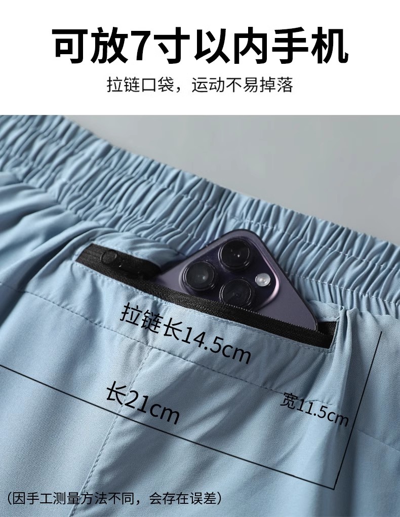 运动短裤女士跑步专用可放手机口袋防走光内衬体育健身中考三分裤