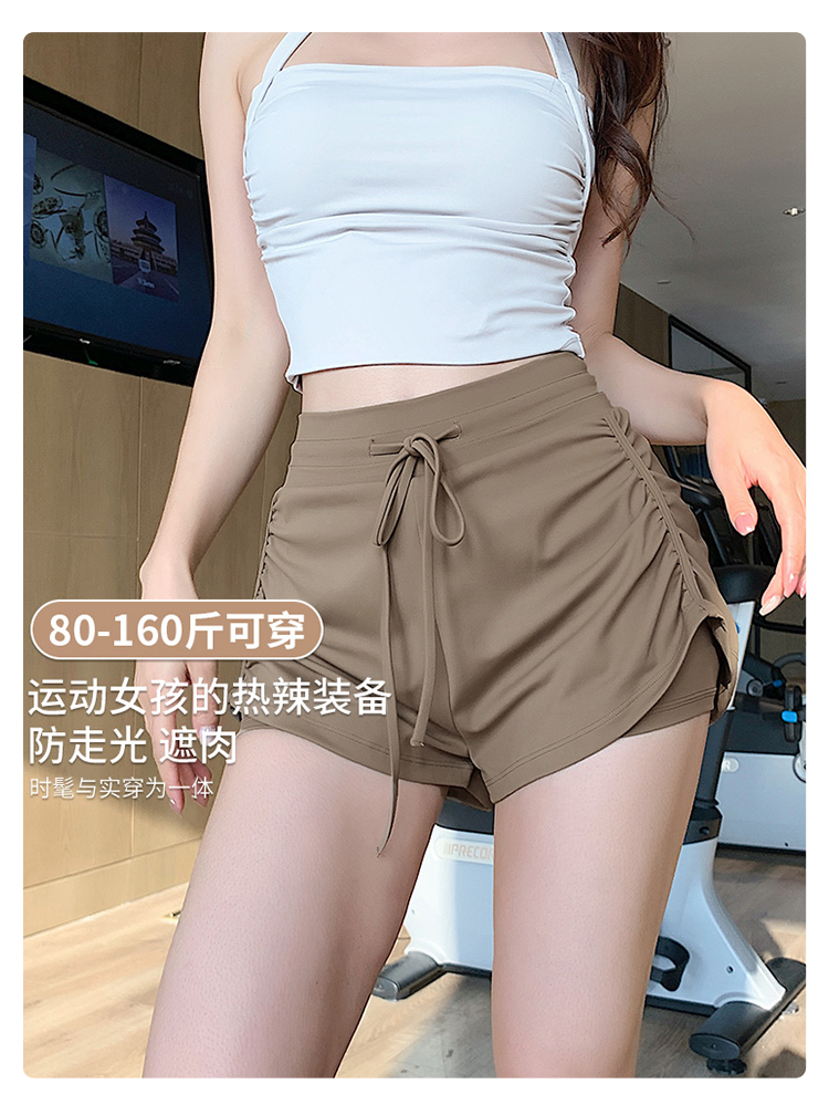 微胖mm大码运动短裤女抽绳假两件健身跑步防走光训练瑜伽三分裤夏