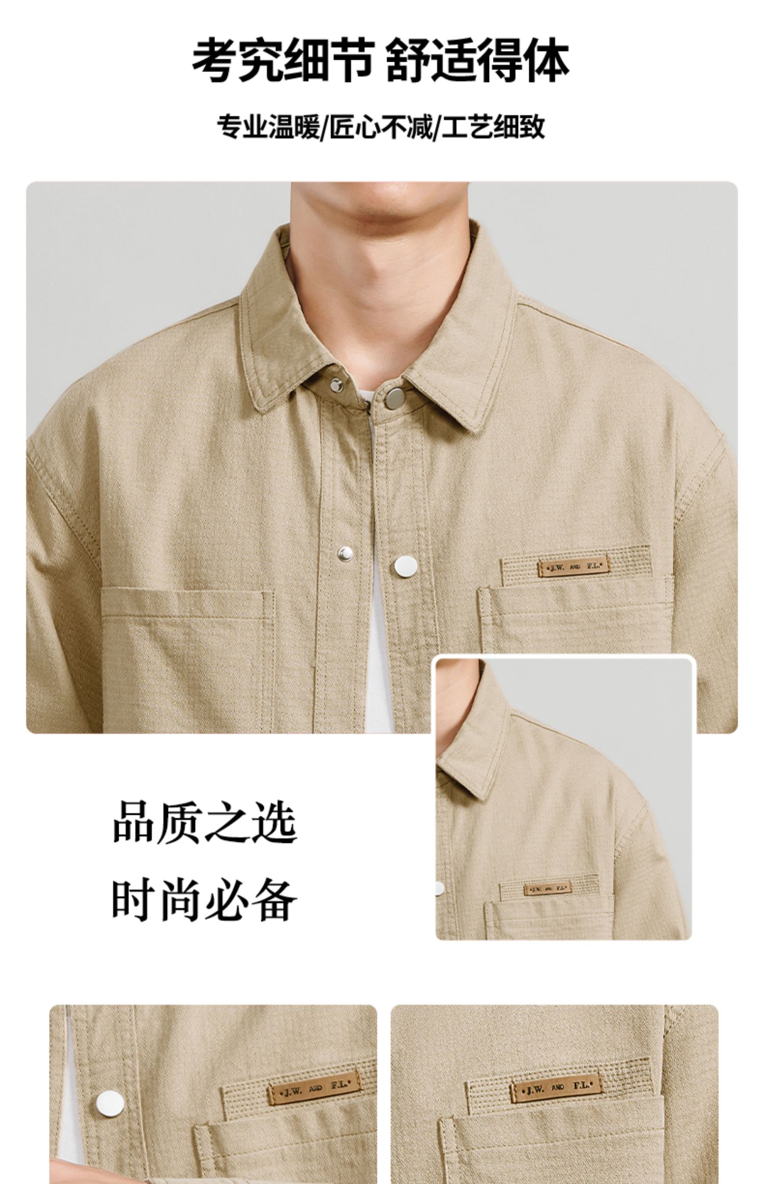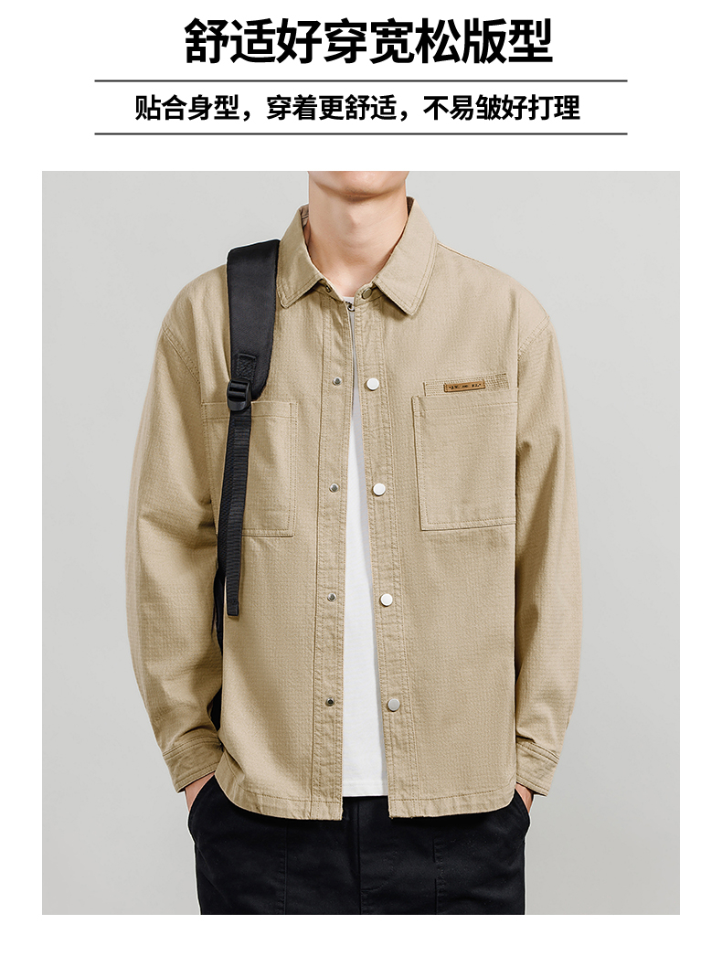 侨迪蒙拉潮牌纯棉春秋款男外套秋冬季加绒加厚衬衫式夹克初秋保暖