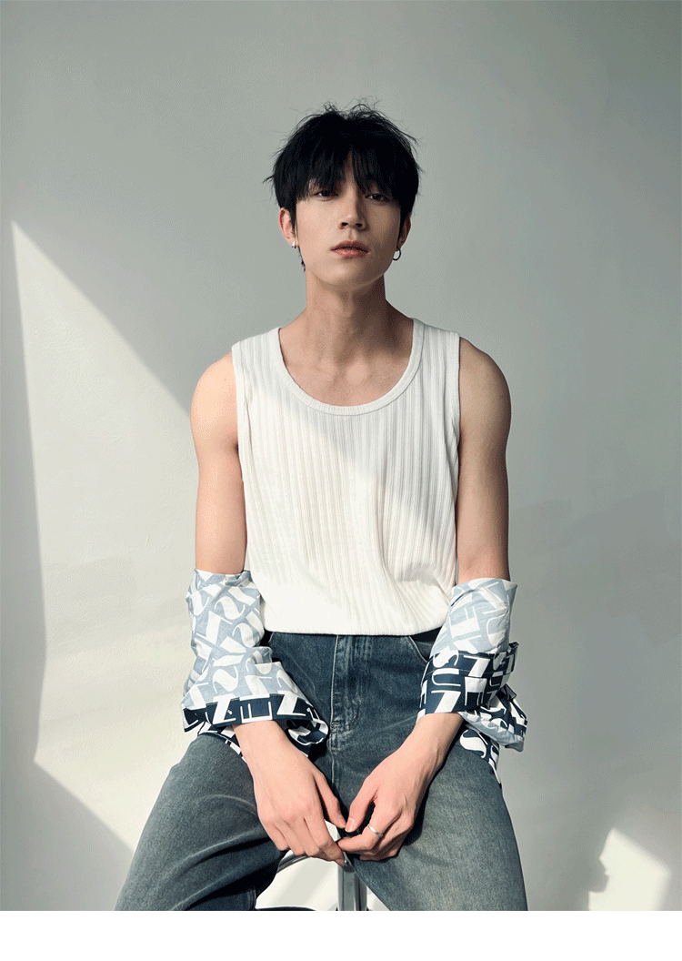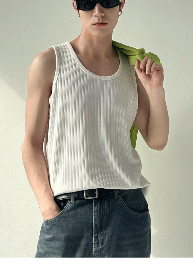 地平线男装 夏310g高克重坑条男女休闲纯色基础款肌理汗背心坎肩