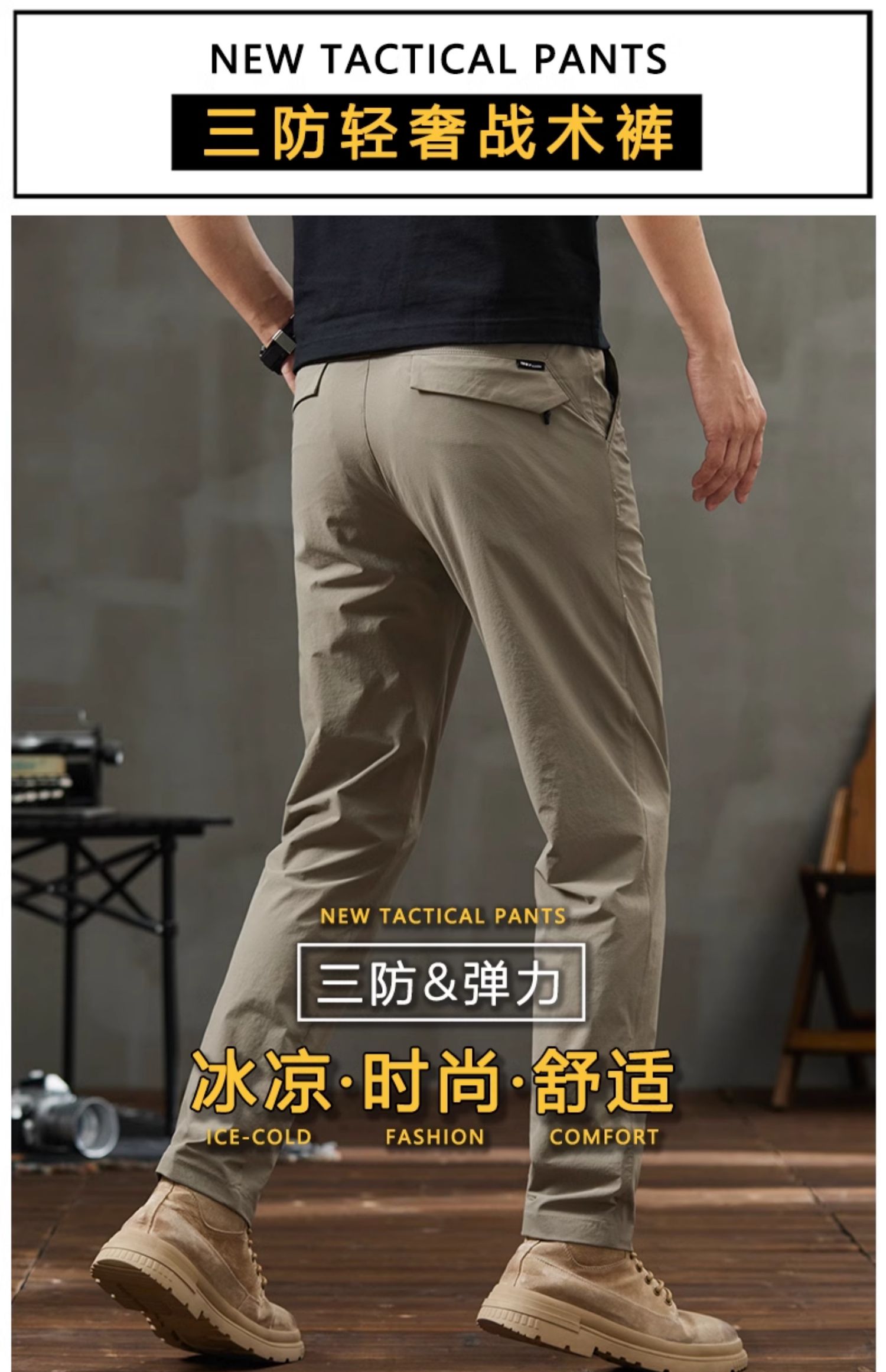 战术裤男休闲裤夏季冰丝薄款2025新款三防西裤小脚通勤裤男